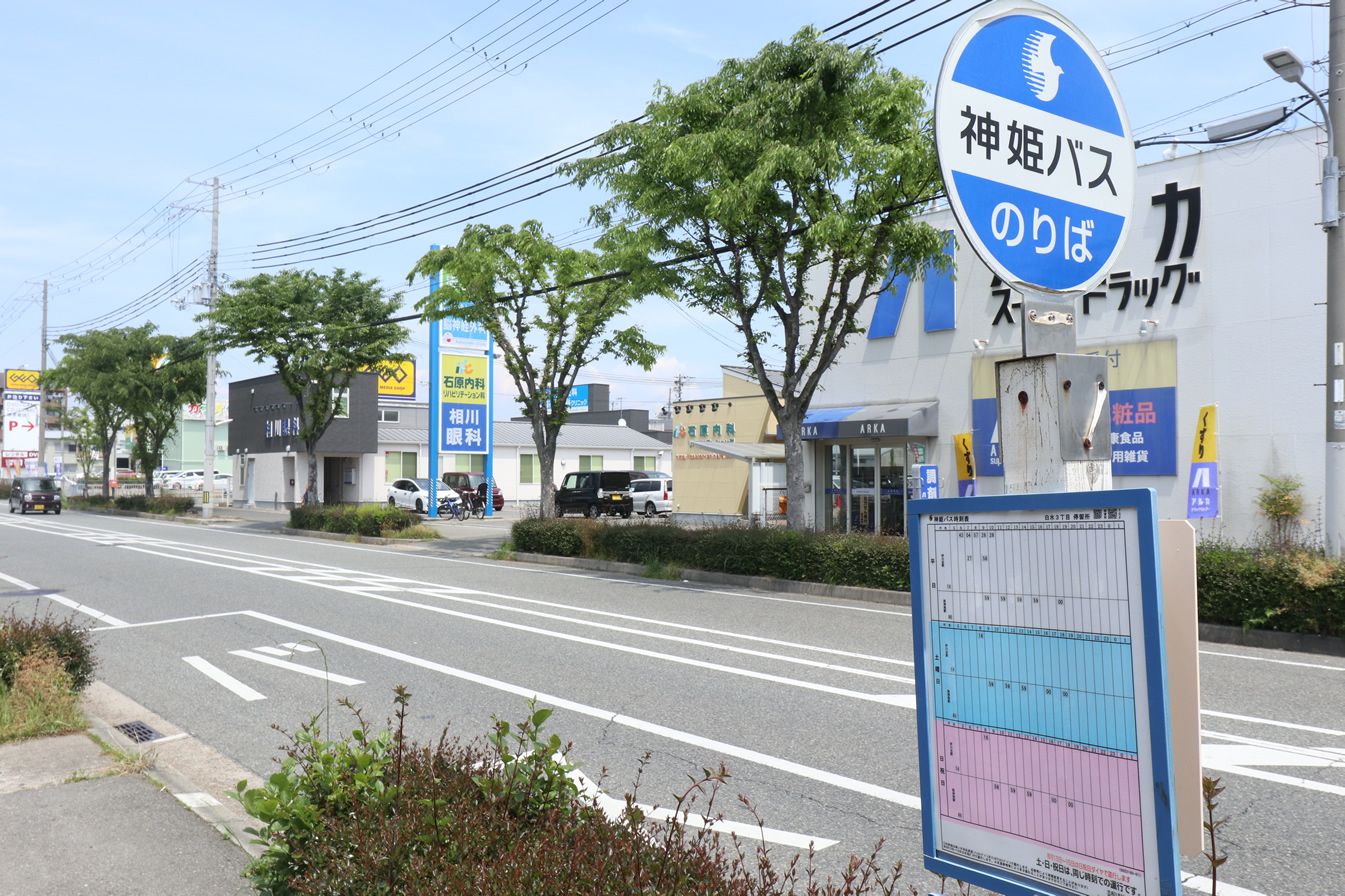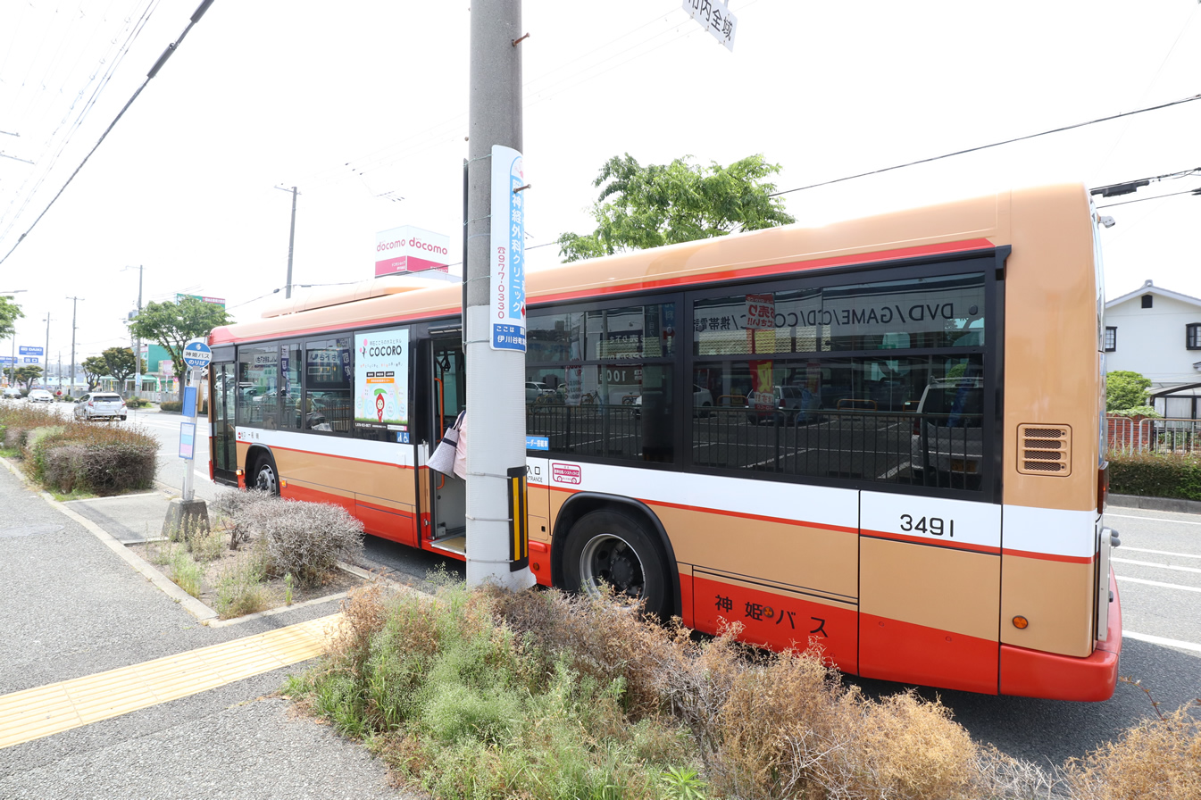 明石駅から14番または86番のバスで約15分の「白水3丁目」バス停が診療所のすぐそばにあるほか、 「白水橋」、「白水1丁目東」バス停も当院から徒歩で数分のところにあります。便数としてはこちらの方が多いです。